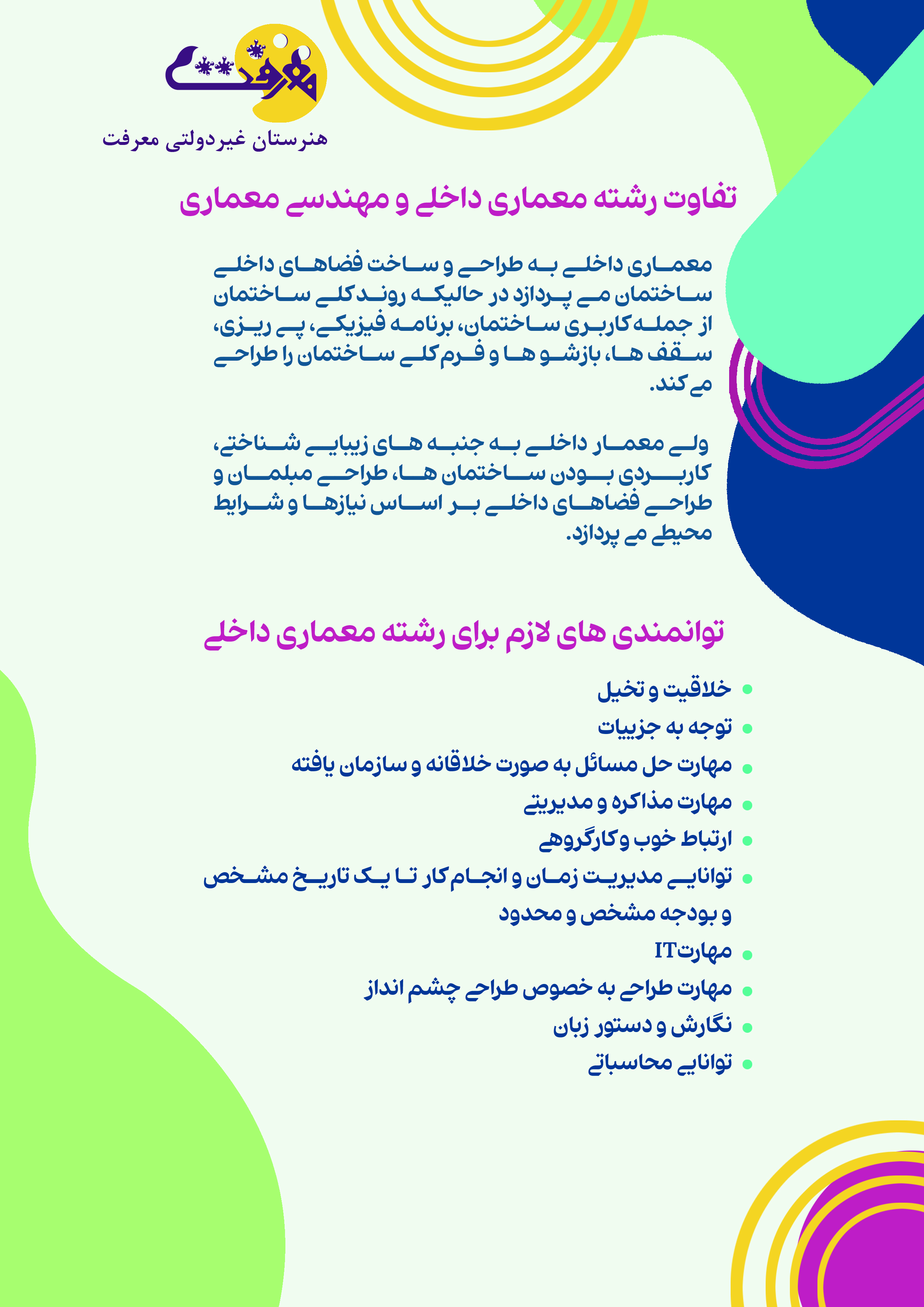 هنرستان معرفت با هدف ارتقاِ سطح آموزشی دروس این پرتال را طراحی کرده. امیدواریم که توانسته باشیم گامی رو به جلو برداشته باشیم.