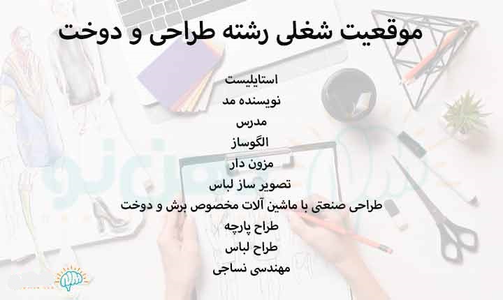 بازار کار رشته طراحی دوختبازار کار رشته طراحی دوخت گسترده و پویا است. فارغالتحصیلان میتوانند در تولیدیها، مزونها، بوتیکها و حتی کسبوکارهای آنلاین فعالیت کنند. با توجه به افزایش توجه به تولیدات داخلی و تقاضای همیشگی برای لباسهای باکیفیت، آینده شغلی این رشته روشن و متنوع است. همچنین امکان راهاندازی برند شخصی و فعالیت مستقل برای افراد خلاق و علاقهمند وجود دارد